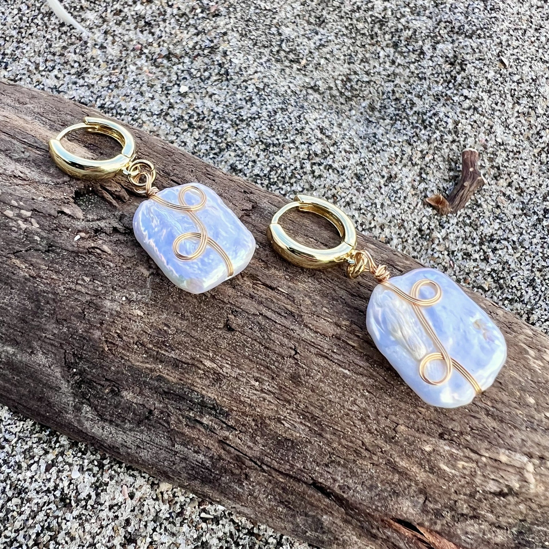 Keshi x Kina features 18k gold plating and natural keshi pearl, held by wire wrap. Organic and luminous, they catch the light with subtle beauty.